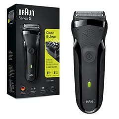 ماكينة حلاقة كهربائية من براون BRAUN SHAVER 300 باللون الأسود بالكامل. تتميز بنظام شفرات متطور لتوفير حلاقة ناعمة وسريعة. تصميم مريح مقاوم للماء يسمح باستخدامها في الجاف والرطب مع إمكانية تنظيفها بسهولة تحت الماء.