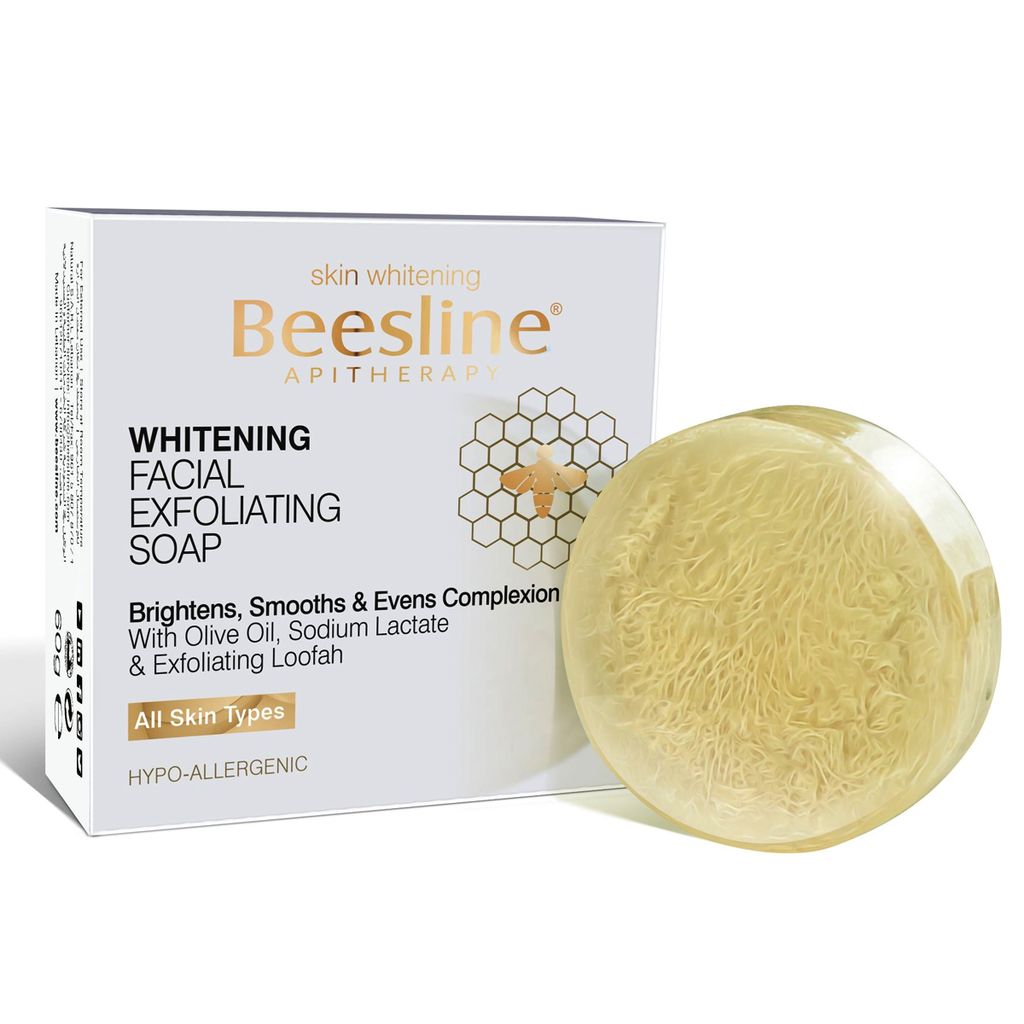 BEESLINE Whitening Facial Exfoliating Soap, a 60g soap bar specifically designed to gently exfoliate and brighten your facial skin. This soap is formulated with natural ingredients to effectively remove impurities, dead skin cells, and promote a smoother, more radiant complexion.
