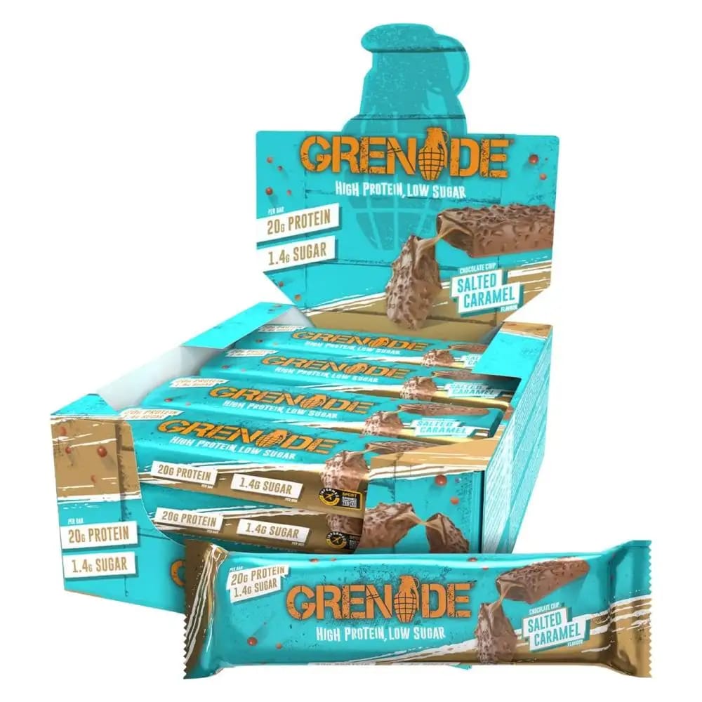 6475b9e0270f960c3dd125fdGrenade Carbkilla Protein Bar Chocolate Chip Salted Caramel 60 gmhttps://www.kunooz.com.sa/s/5e5b8eb5e1a30016118f588f/6475bbe7ae9ced7dfdf6ea5a/43986.jpgProduct Description: High protein , low sugar bar. 20g protein per bar. 1.4g sugar. A triple-layered treat, featuring a tasty salted caramel layer, soft nougat and a delicious milk chocolate coating. This protein bar is packed with real peanut chunks on top of a gooey caramel layer and soft peanut butter flavoured nougat, all coated in smooth milk chocolate. With just 2g sugar and 21g protein per bar, you’d be nuts not to switch out your ‘usual’ chocolate bar to this healthier snack! Grenade bars is an indulgent low sugar snack, ideal for enjoying at any time of the day as a delicious snack or a post workout treat.43986